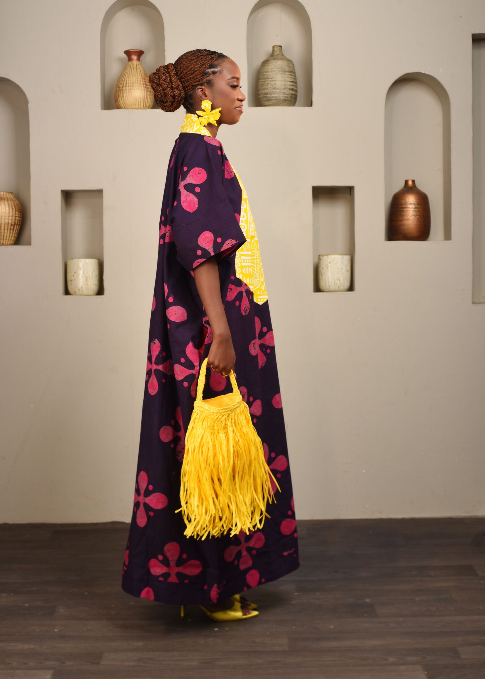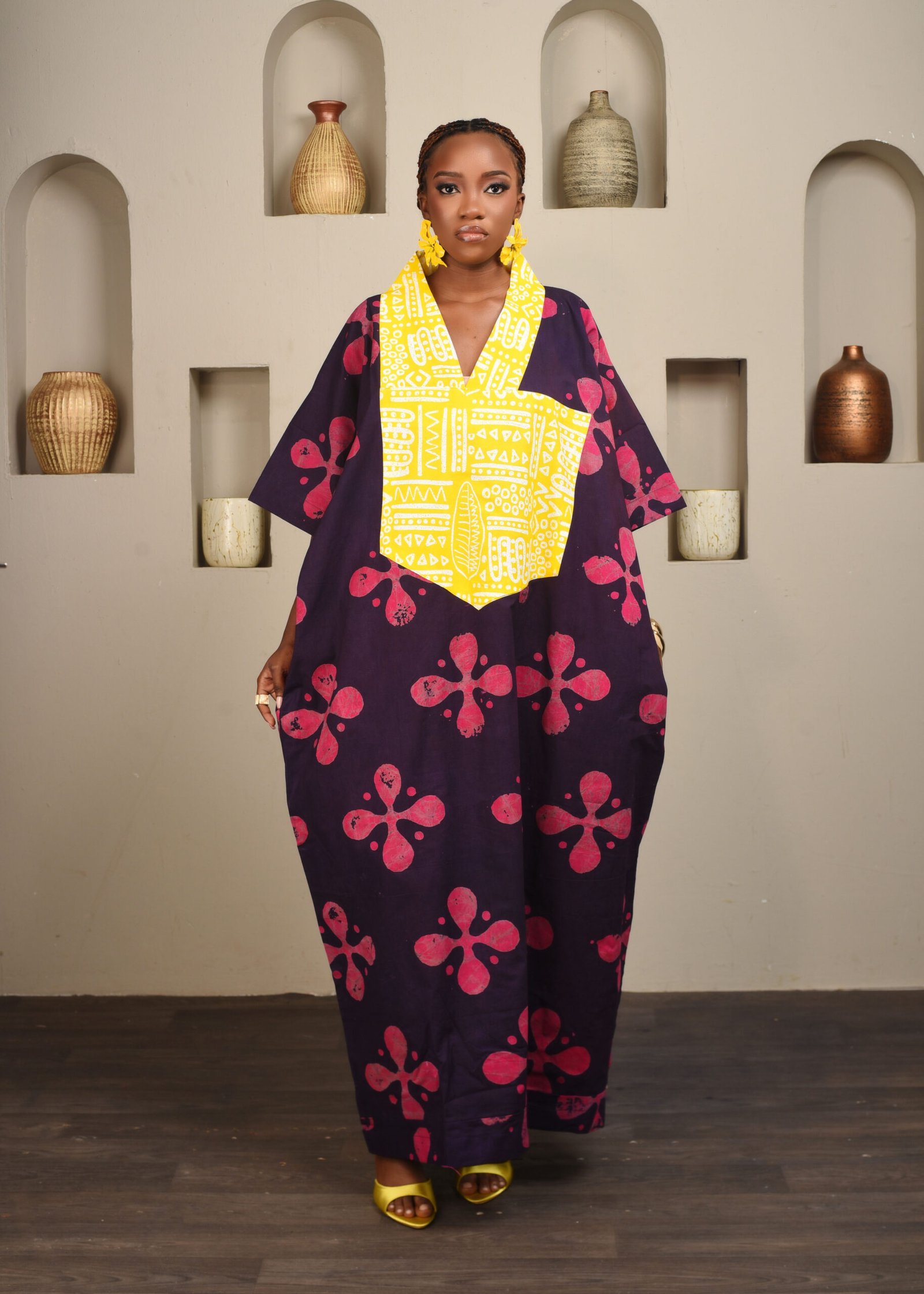 A perfect cotton boubou to the office on Friday, to brunch on Saturday and to worship on Sunday! Complement with low-heeled mules and watch as it catches the breeze!